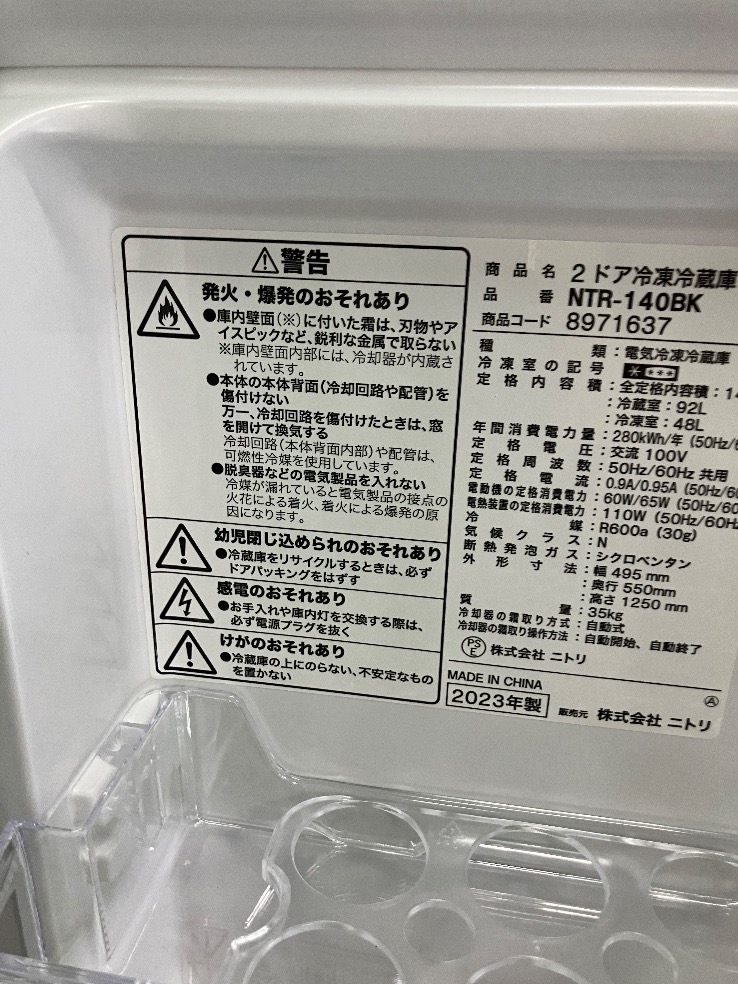 2025年10月11日 投稿ナビゲーション 前後 No14148 冷蔵庫(140L) 17,600円 カテゴリー新着買取商品冷蔵庫 この投稿をシェア twitter facebook line 詳細情報 販売価格17,600円(税込)種類冷蔵庫(140L)商品番号No14148メーカーニトリ型番NTR-140BK年式2023特徴備考