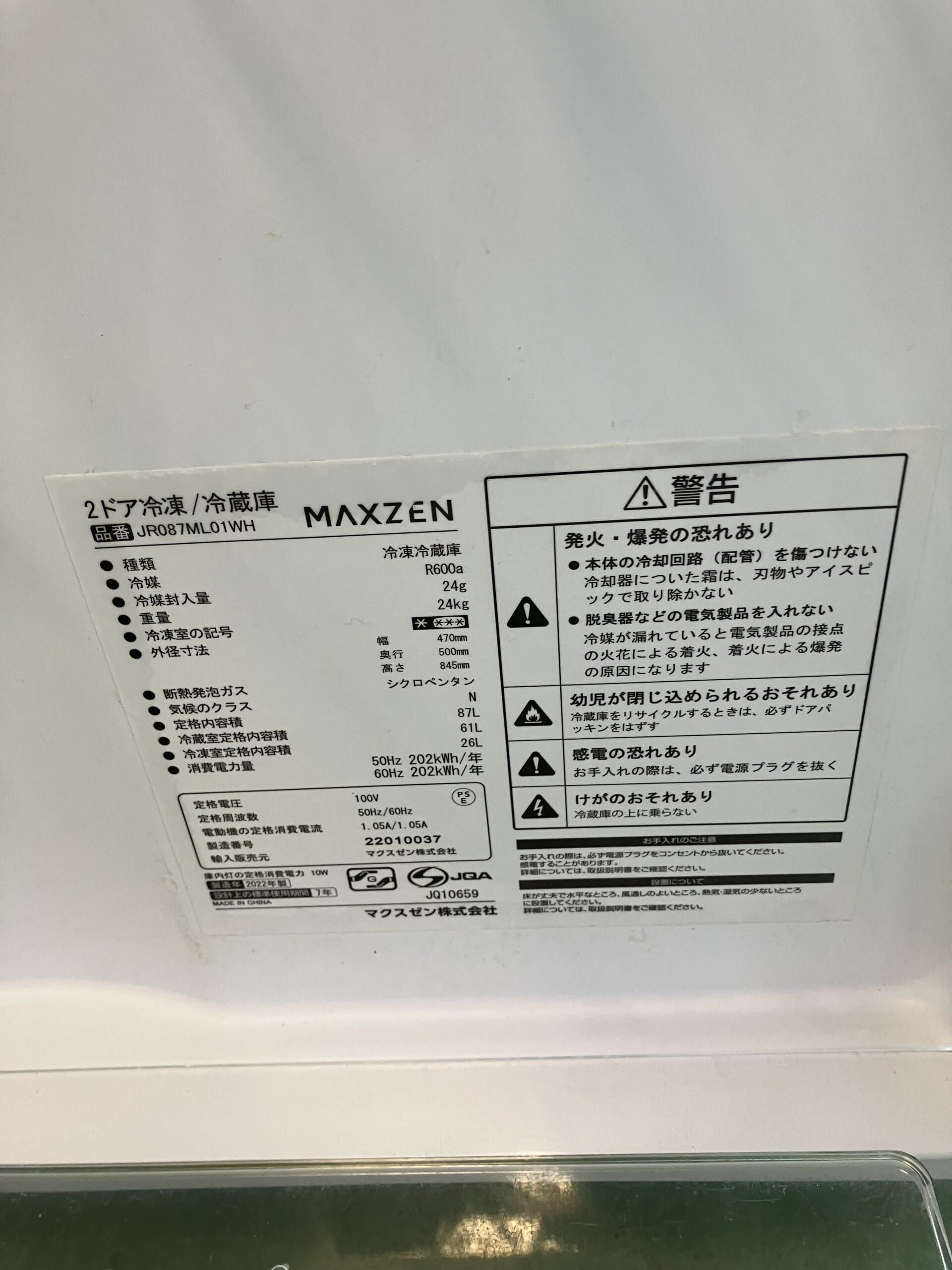 型番JR087ML01WH