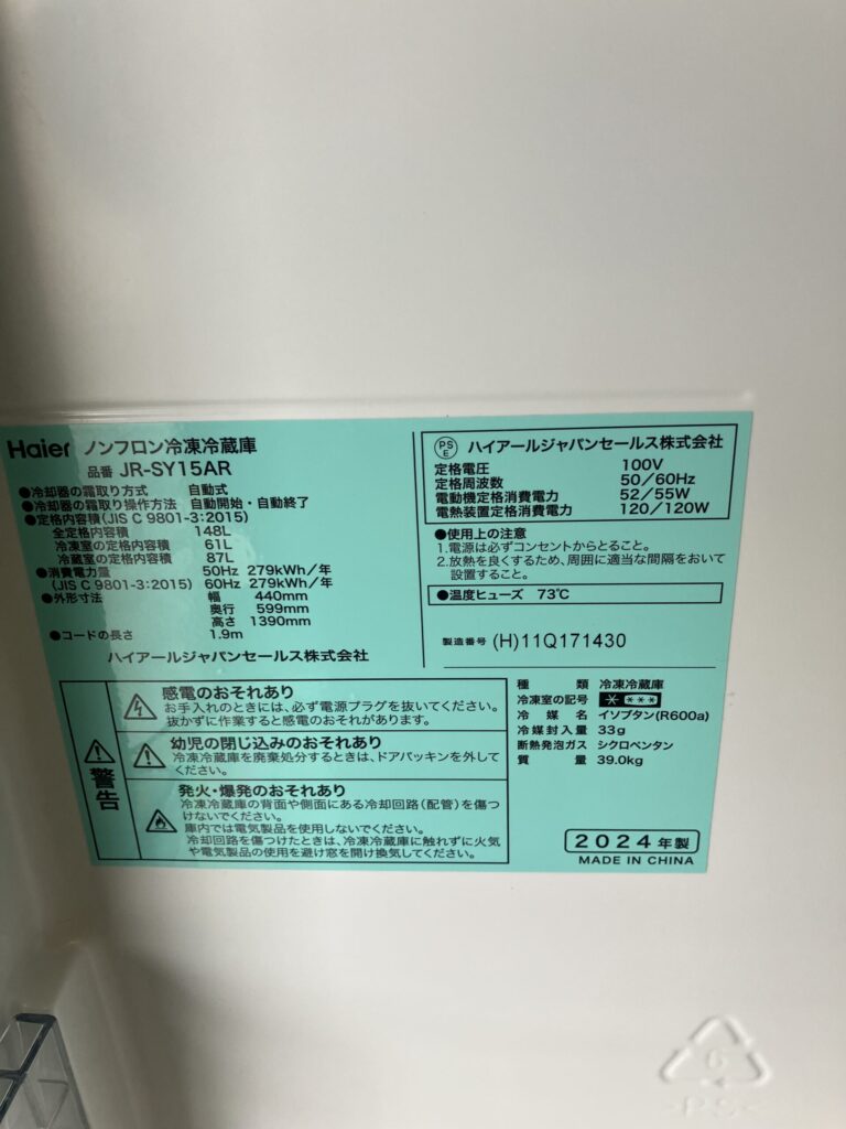 2026年4月1日 投稿ナビゲーション 前後 No.15389 冷蔵庫(148L) 33,000円 カテゴリー新着買取商品冷蔵庫 この投稿をシェア twitter facebook line 詳細情報 販売価格33,000円(税込)種類冷蔵庫(148L)商品番号No.15389メーカーハイアール型番JR-SY15AR年式2024年式特徴横幅狭め備考※表面に小傷あり
